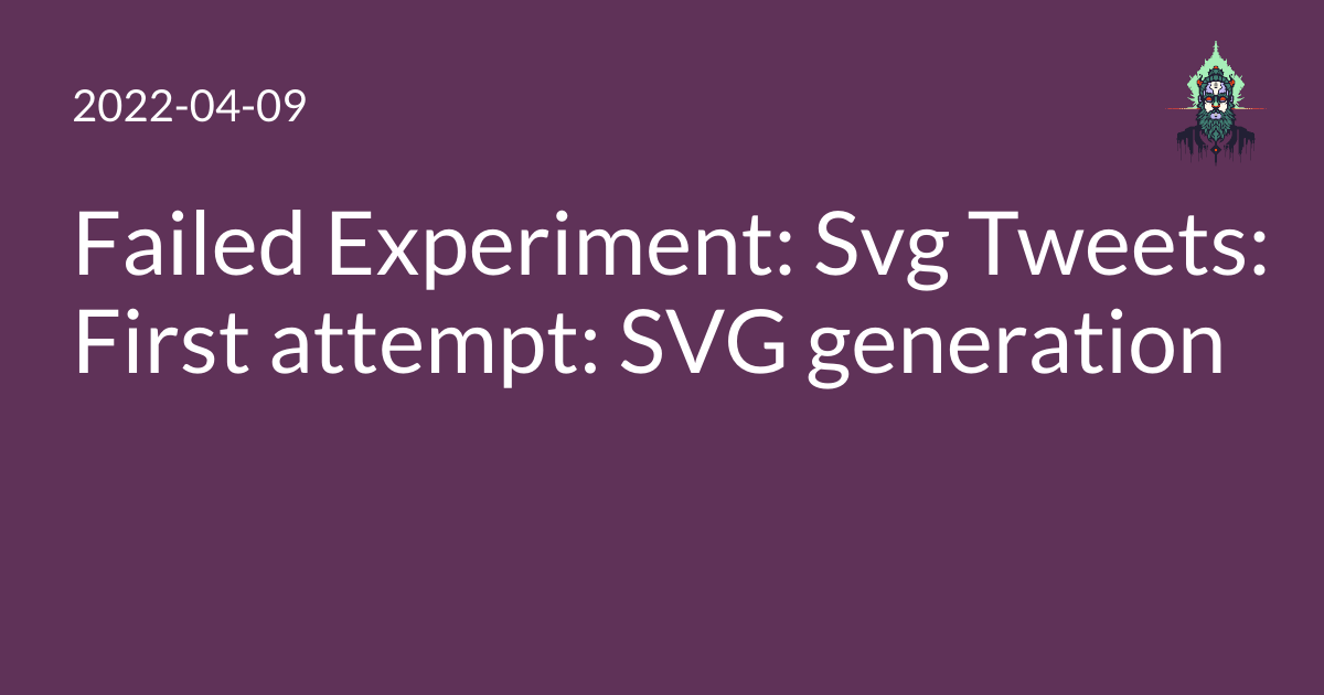 (This is part 1 in a set of failed experiments trying to generate SVG tweets in Hugo. I eventually abandoned this goal, and generate HTML archives of tweets instead.)