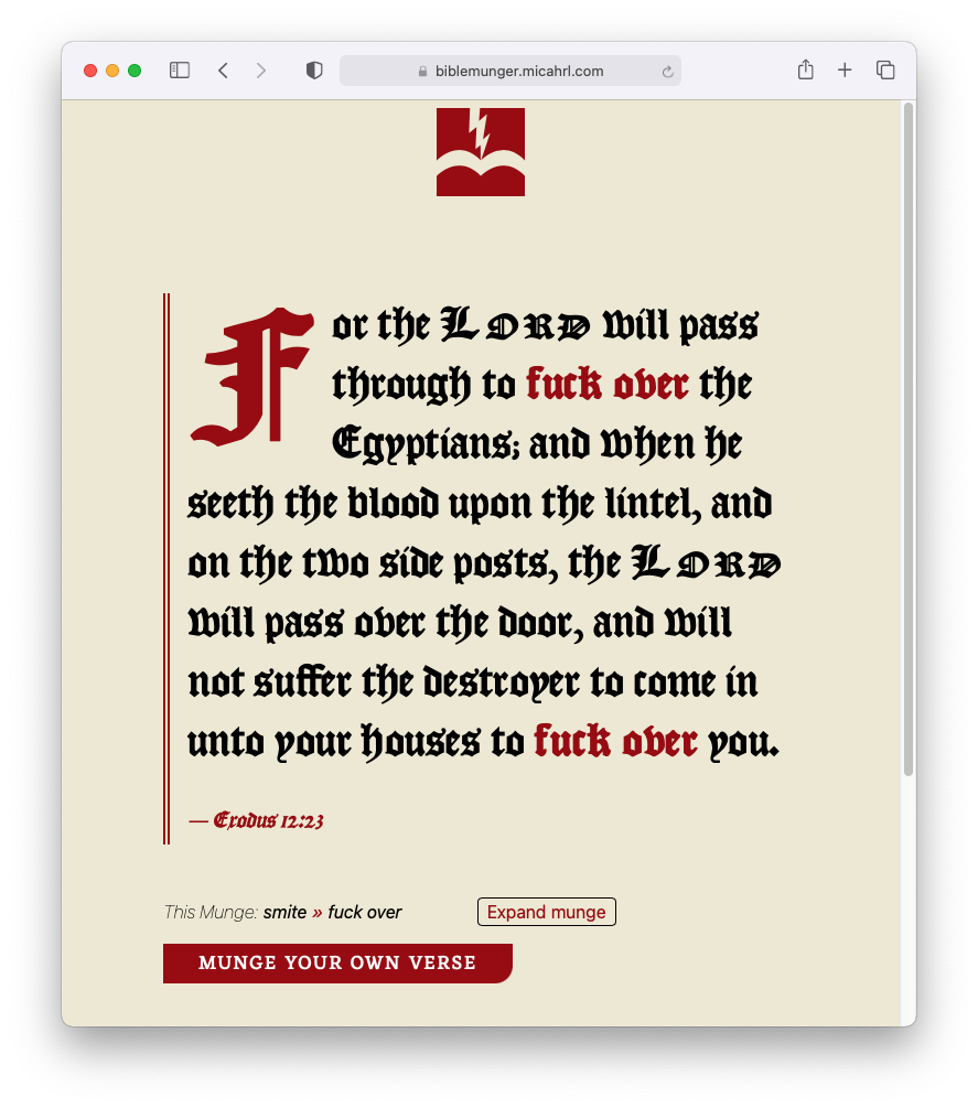 Controls for biblemunger show font options. I think I picked the best fonts for the page, but I wanted to include an option (even if secret) to use a lovely digital restoration of the original 1611 King James Version typeface. It is very busy for the modern eye, but I just could not resist.