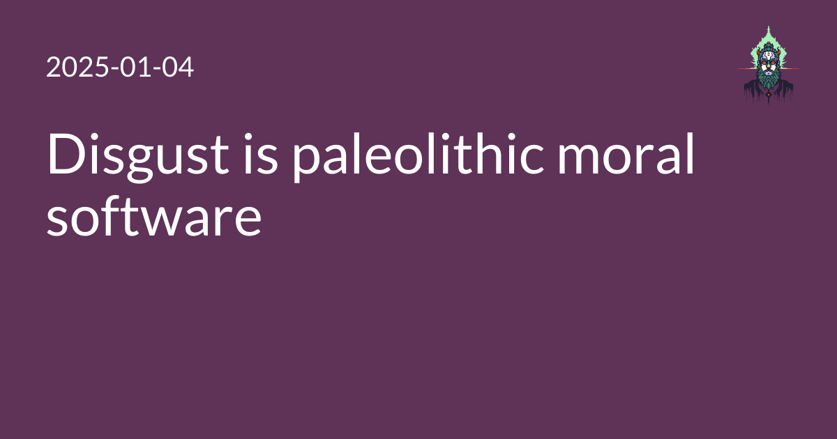 What I mean by that is, when our bodies or our cultures start to recognize something as disgusting, there’s a reason for it. It’s obvious that a disgust reaction to rotting meat serves us in prehistory, so that we don’t eat something that makes us sick. We can also see this more abstractly, that moral disgust served social purposes too. For instance, there is a lot of ambient disgust about sexual practices in modern culture. Considering how many people rely on the Bible, which includes translations of bronze age oral tradition on very old laws on sexual conduct, clearly this disgust has been with us for a long time.