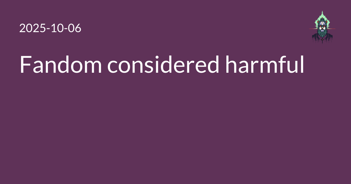 My definition of a “fan” is a person who makes something a core part of their identity. Colloquially, this definition is intertwined with that of the enthusiast and the supporter, but I want to keep those other concepts separate. Enthusiasts might know all the stats and have a good time at live events, and supporters might invest resources toward a preferred outcome, but fans make their objects of interest part of who they are.