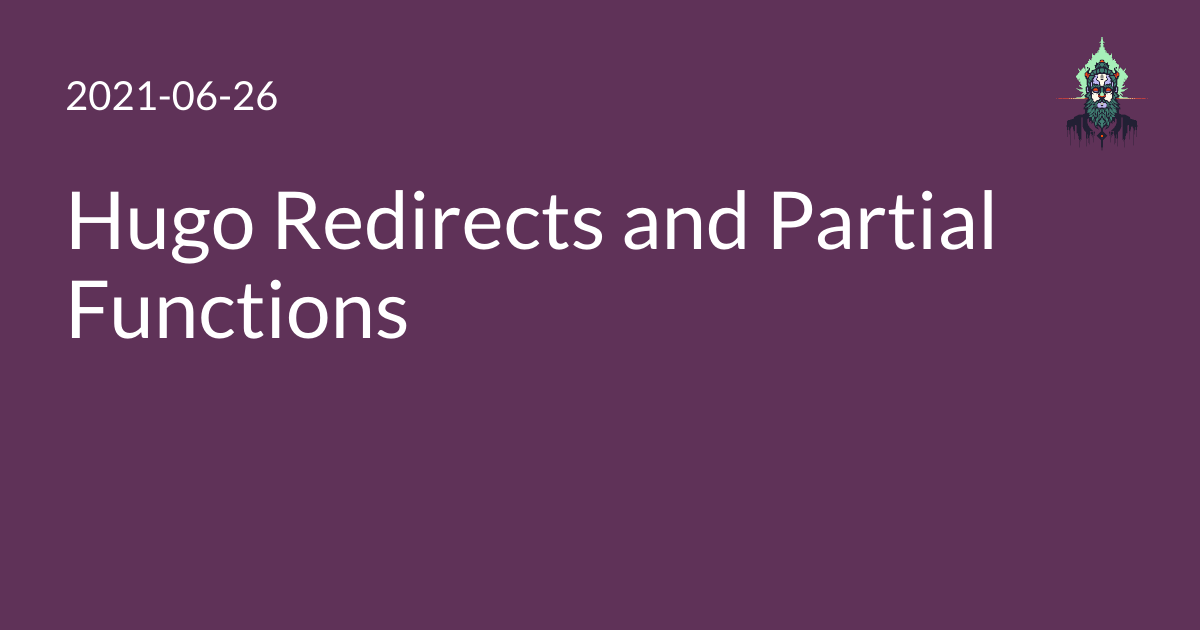 With several places to define redirects, I decided I wanted to have a single source of truth for all of them. This was hard and is kind of a hack, but by abusing Hugo .Scratch and partial templates, it turns out you can build a partial template that accepts a mutable scratch variable and modifies it. Though it is a partial, it prints no text to the document that uses it. I learned about this via an excellent post, Approximating Custom Functions in Hugo.