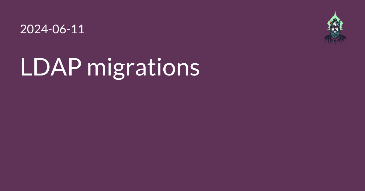 This meant I needed to make structural changes to the LDAP server during initialization. However, there is nothing as nice as SQL’s CREATE TABLE IF NOT EXISTS or INSERT INTO ... ON DUPLICATE KEY UPDATE. Instead, you must check whether the change you want to make has already been made. But LDAP is itself a database. Why not have it keep track itself?