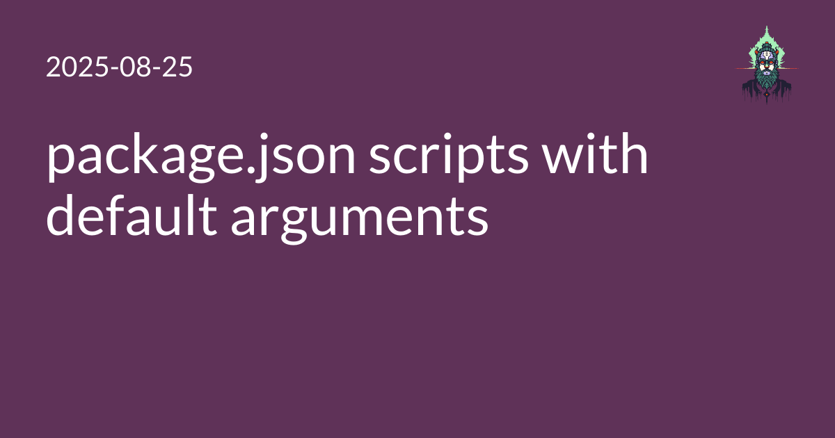 And so, when I need to define an NPM script that should provide some default argument but allow the user to override it, I use this idiom: