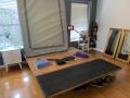 When I’m done, I just roll up my mat and put away the equipment I was using, and pull the mattress back down.