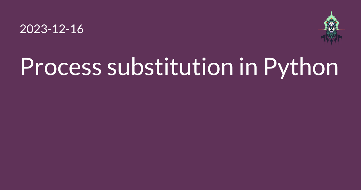 I’ve written some code trying to emulate a pipeline in Python before, without attempting to add process substitution. It might be useful as a pattern to copy and paste into code that needs a pipeline pattern. I think the code is kind of messy and I wouldn’t write it this way today.