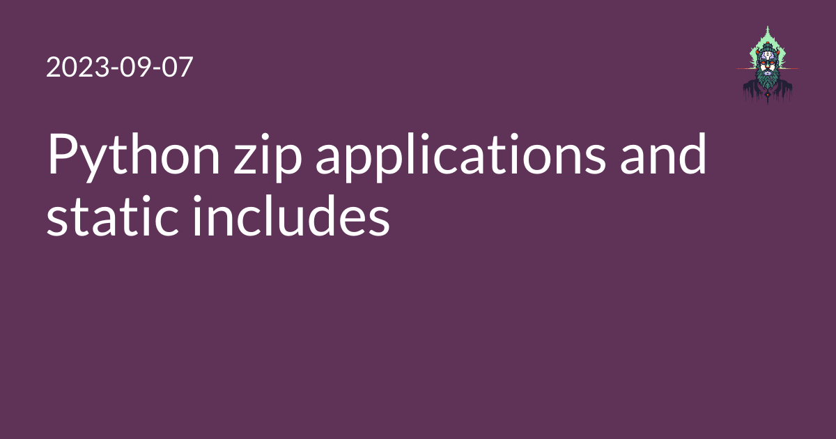 This reminds me of static linking, which is possible in programming environments like C, and the default for code written in Go. Python programs don’t have a linking step, so the name doesn’t apply exactly, and I’ve taken to thinking of them as static includes2.