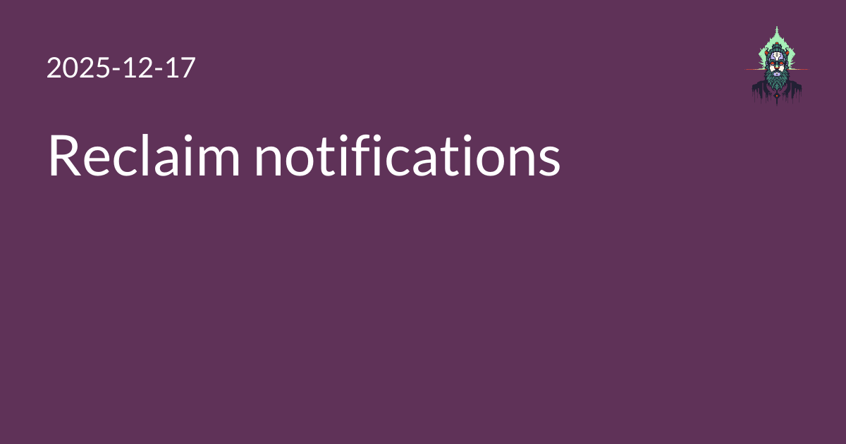 Notifications serve the interests of whoever controls them. That whoever can be us, if we change them from their defaults. These are steps I think everyone ought to take.