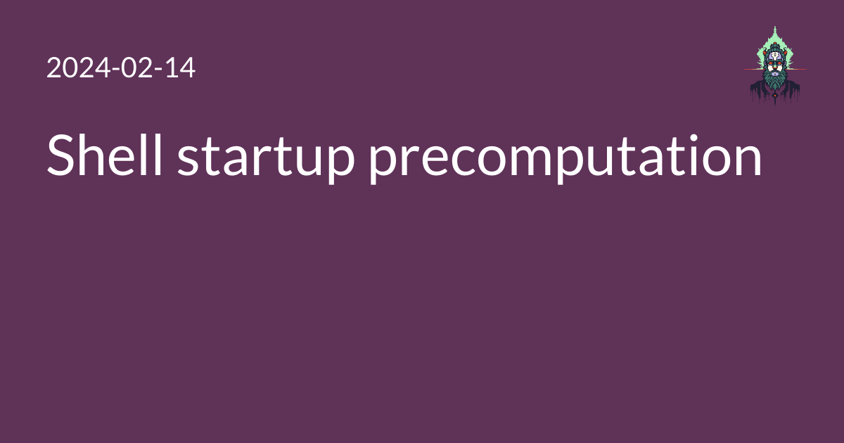 I have a script called dhd-shdetect that detects a bunch of stuff I want to account for in my shell that rarely changes, caching it in the file $HOME/.shdetect_dhd.sh. Anything that it can precompute is code that doesn’t have to run at every shell startup. Then, as much as possible, .zshrc and .profile files use the precomputed values rather than running code themselves. I’m not fanatic about this; if the best thing to do is run code at shell startup, then I do.