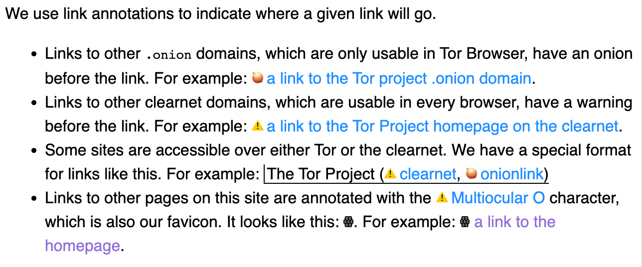 To emphasize the privacy considerations of browsing in Tor vs the regular Internet, I implemented link annotations.