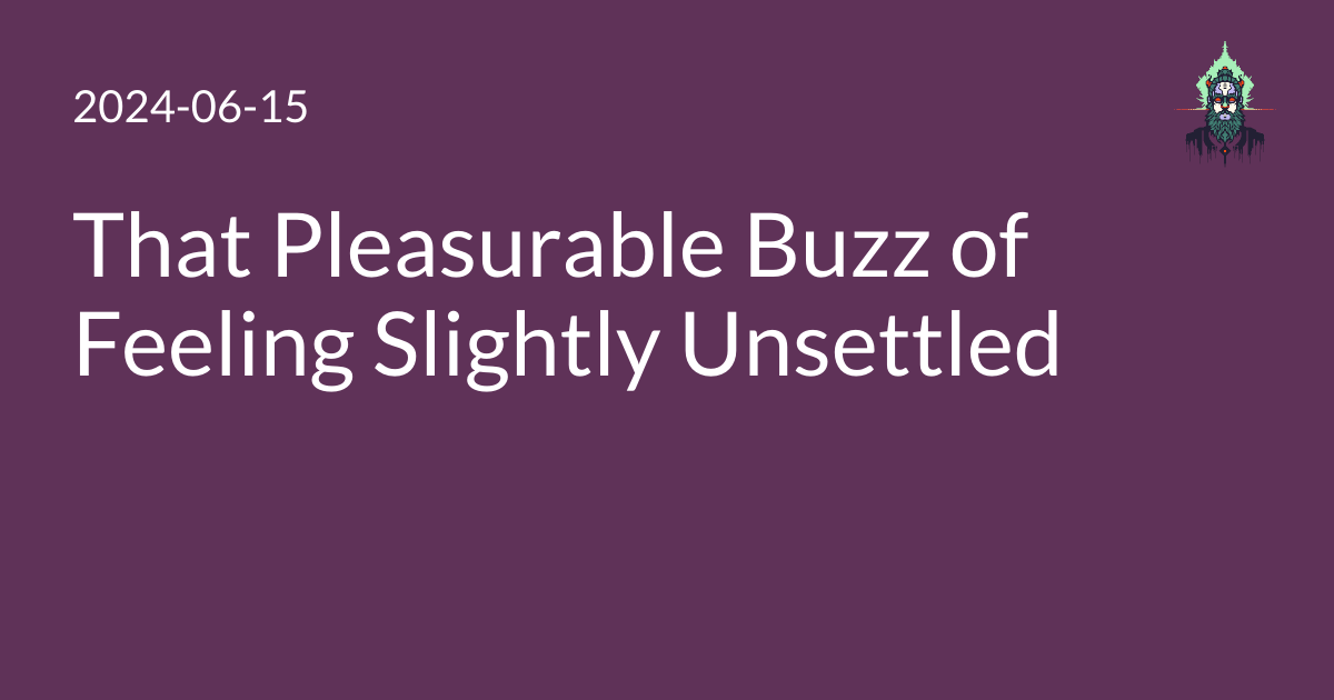 This is one of my favorite quotes of all time. That pleasurable buzz of feeling slightly unsettled. What a sensation.