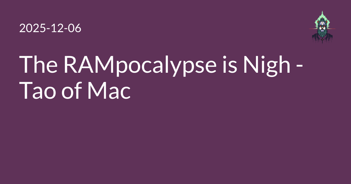 I do find it highly amusing that people find that Apple’s M-series Macs are now in line with the market, especially since this dynamic doesn’t really apply to Apple–remember they fab the RAM directly into their CPUs, so they’re largely immune to discrete component pricing fluctuations.