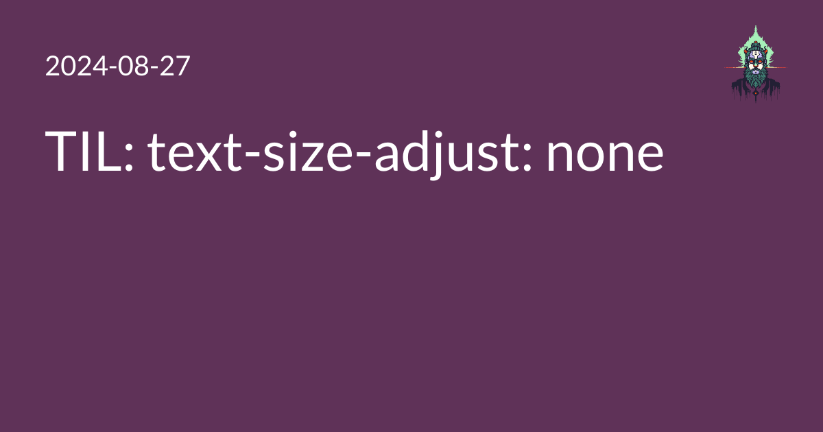 To fix it, you need to set both -webkit-text-size-adjust: none and text-size-adjust: none. iOS Safari debuted the -webkit-text-size-adjust property and that is still the only one it respects. Chrome and Edge and others support the experimental standard text-size-adjust property. Firefox doesn’t support either, though I’m not sure whether mobile Firefox has the bad behavior in the first place.